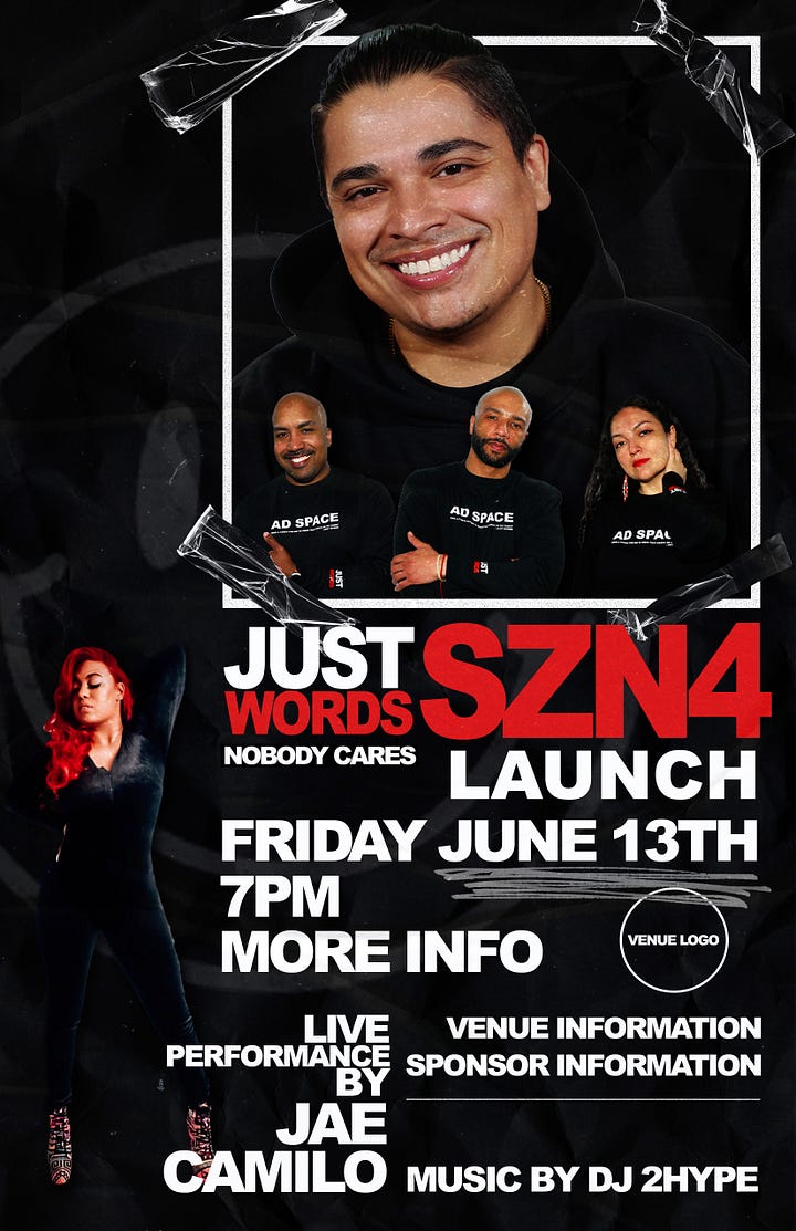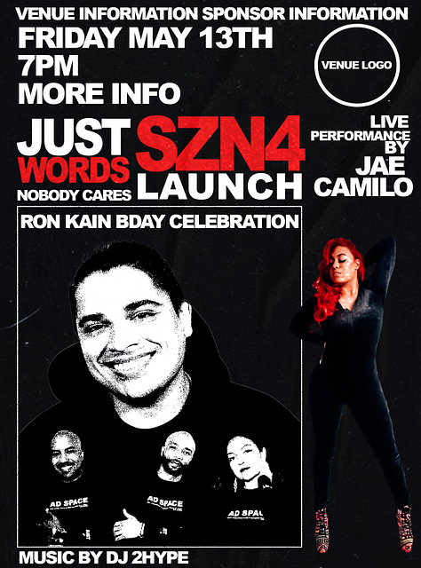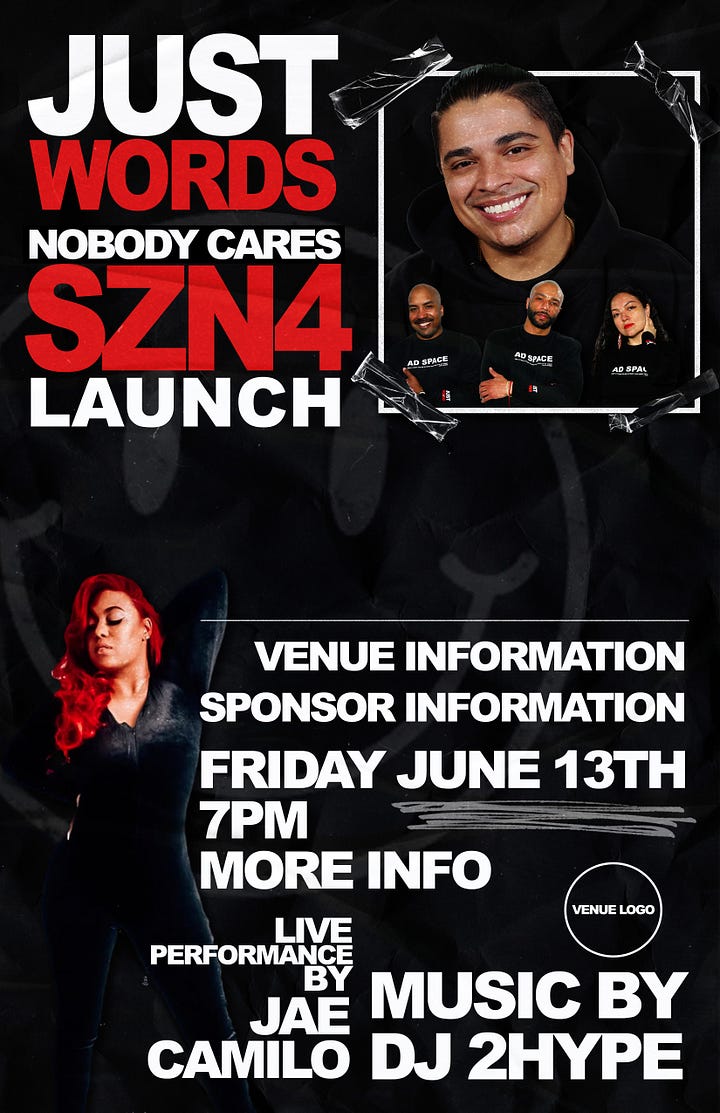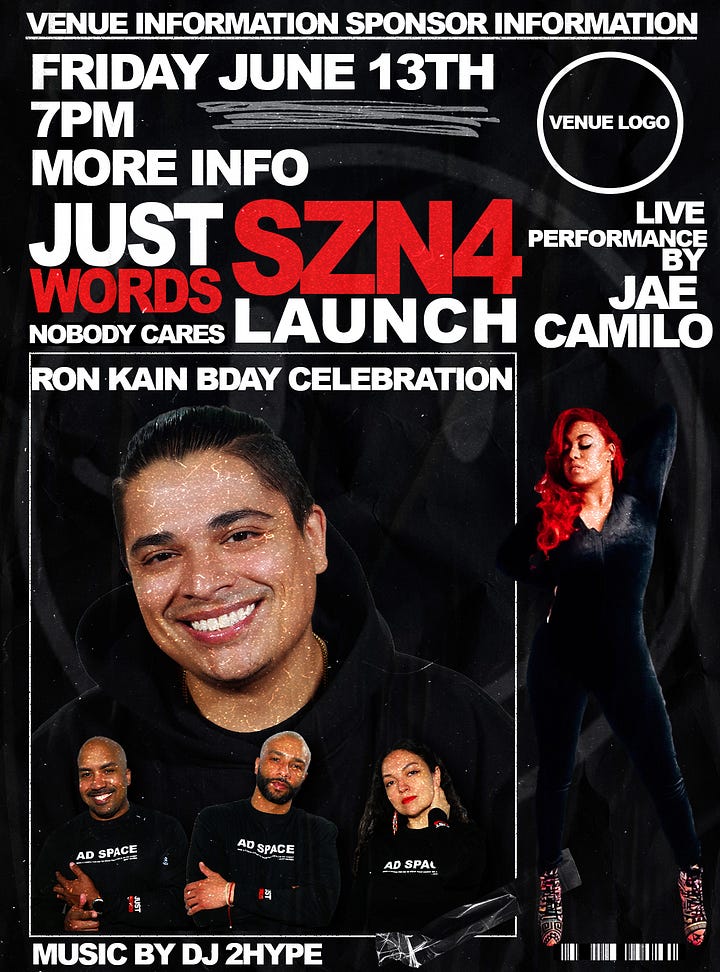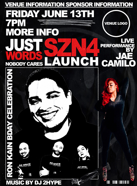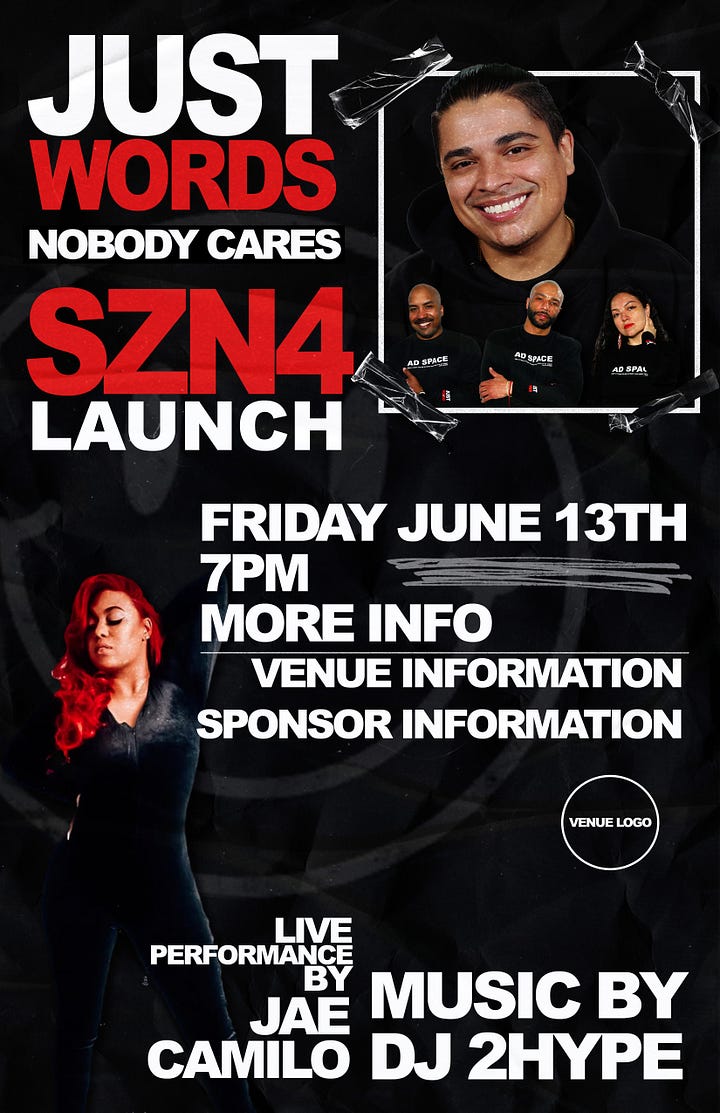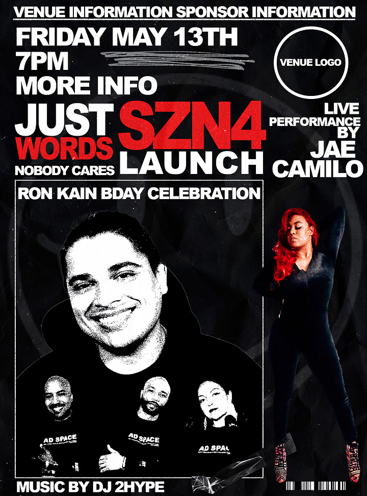 - I had to figure out who I wanted involved. We had already recorded Jae Camilo as our first guest for SZN4, and I genuinely love her music. So she was the first person I thought of for a live performance. I also knew I wanted my brother, DJ 2Hype, to control the music. I started drafting the flyer process around May 1st, but my early mockups had the wrong date May 13th instead of the real target: June 13th. Even among the chaos and over thinking of every other detail I still managed to overlook the most obvious bit of info.