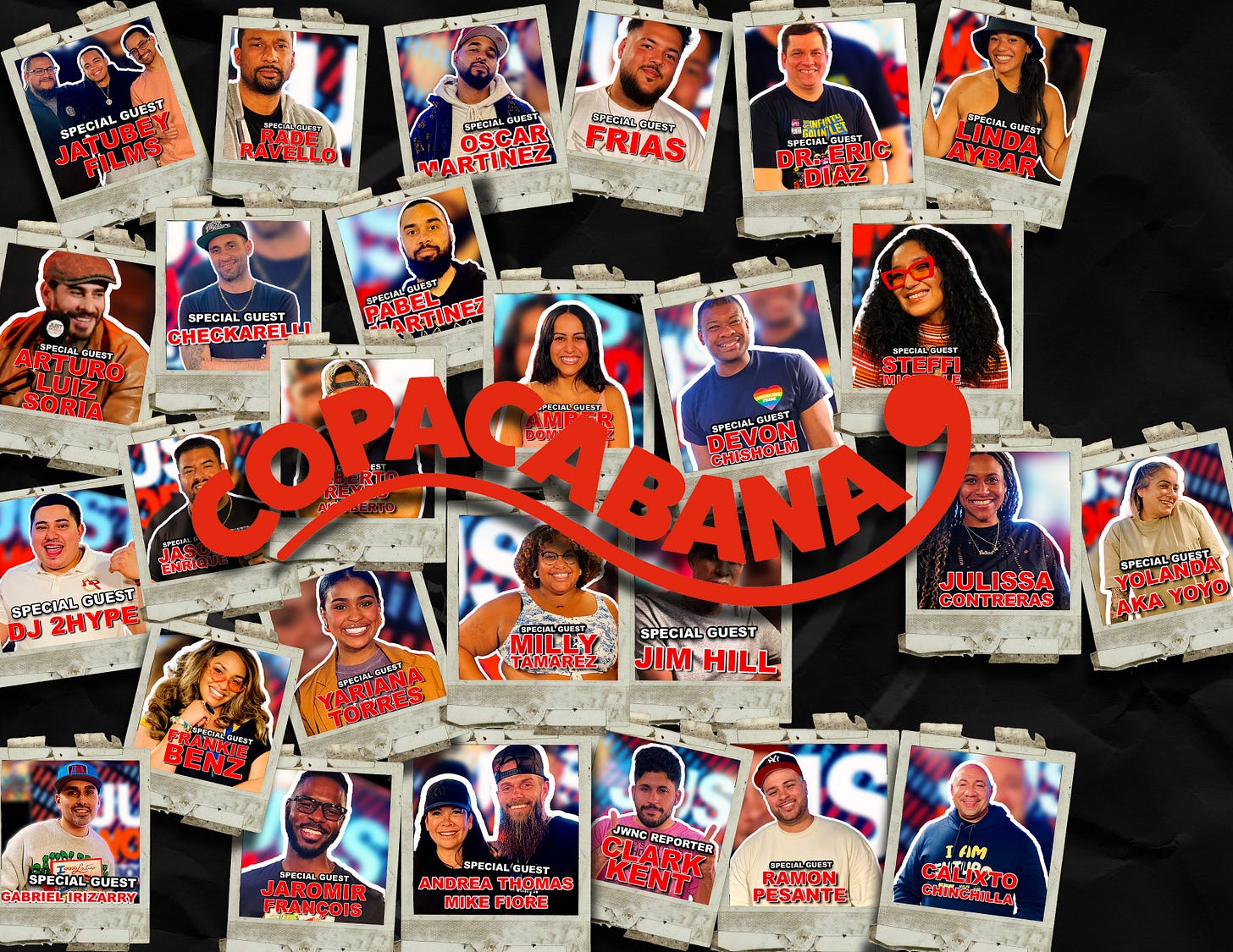 One of the direct inspirations for the flyer actually came from an old Copacabana promo. I thought it was dope because it featured a bunch of people that are being highlighted at the Copa for their event and I appreciated the cut out xerox approach to make it happen. That got me thinking what if I reversed engineered that “feeling” using photoshop and put everyone in a polaroid frame that included all (or at least most) of our past podcast guests?